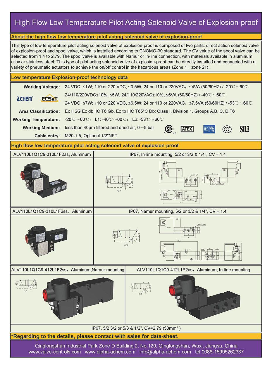 High flow low temperature pilot acting solenoid valve of explosion-proof