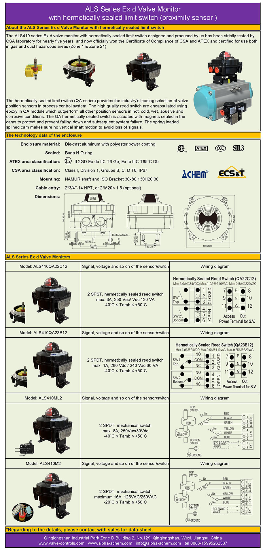 ALS Series Ex d valve monitor with hermetically sealed limit switch